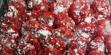A deep vibrant red and dusted with snowy powdered sugar, these cookies are as sweet as they look! Soft, chewy, and bursting with strawberry flavor and cream cheese flavored chips, each bite melts in your mouth with a fruity sweetness that’s impossible to resist. Perfect for Valentine’s Day, birthdays, baby showers, or simply treating yourself to something special.