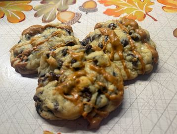 All the flavors of fall, baked into one incredible cookie! Soft apple cider spice dough, dusted in cinnamon sugar, hides a gooey caramel center with that warm apple-donut flavor you. Perfectly cozy, perfectly sweet, and perfectly made for autumn nights, fall parties, or treating yourself with a taste of the season. Because when caramel, cookies, and cider donuts come together - magic happens.