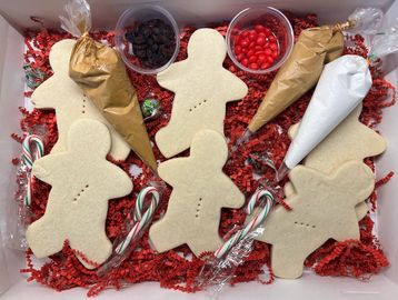 Each kit consists of 12 undecorated cookies (4 different designs), 4-6 bags of icing, sprinkles, and an info card with pictures and instructions. Please contact us if you would like a particular theme.